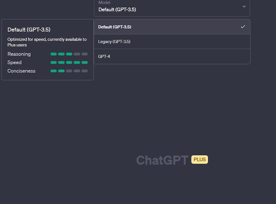 那Default(GPT-3.5)跟GPT-4與免費版的GPT-3.5差異在哪呢?