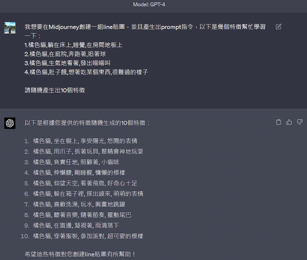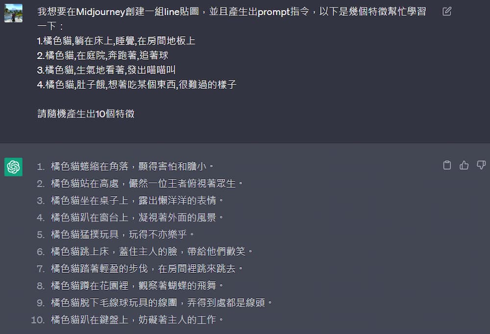 主要是之前我製作LINE貼圖時,要請GPT幫我想其他範例用的。(可看這篇文章)
